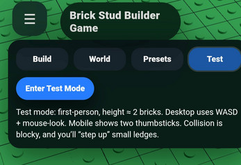 BSBG is a freeform building sandbox where the fun comes from placing blocks, shaping environments, and seeing ideas come together. There are no objectives or timers — just a playful world designed for building, testing, and experimenting.